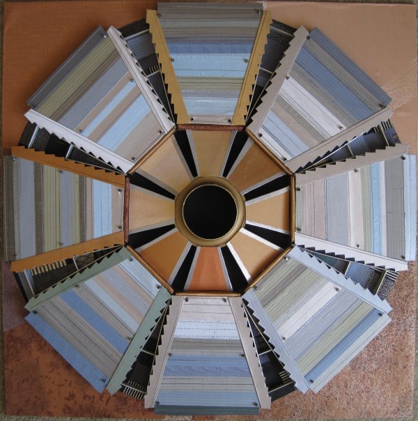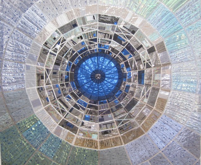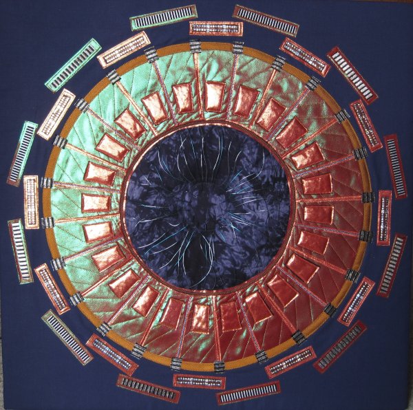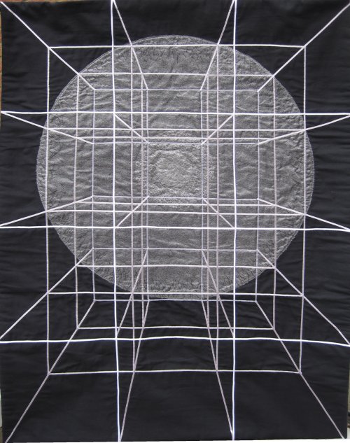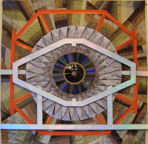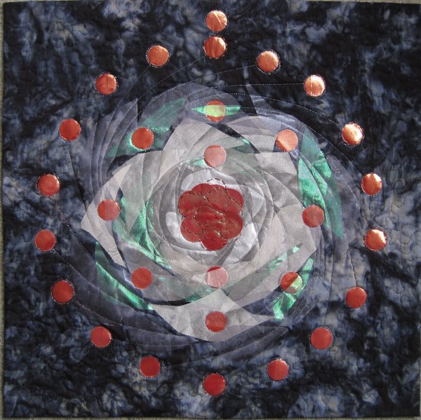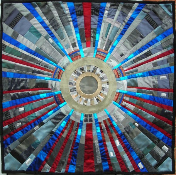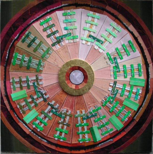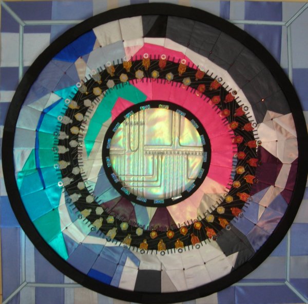 In September 2008 I saw an article in the newspaper about the Large Hadron Collider. It was accompanied by some images of parts of this gigantic machine. I was very intrigued by what I was seeing so decided to do some research about CERN. I became totally fascinated by the fantastic circular images I found, and have been working on a textile series ever since that draws inspiration from this machine. More recently I have been using the physics behind the LHC as my source material - work by the greatests physicists of the 20th Century.